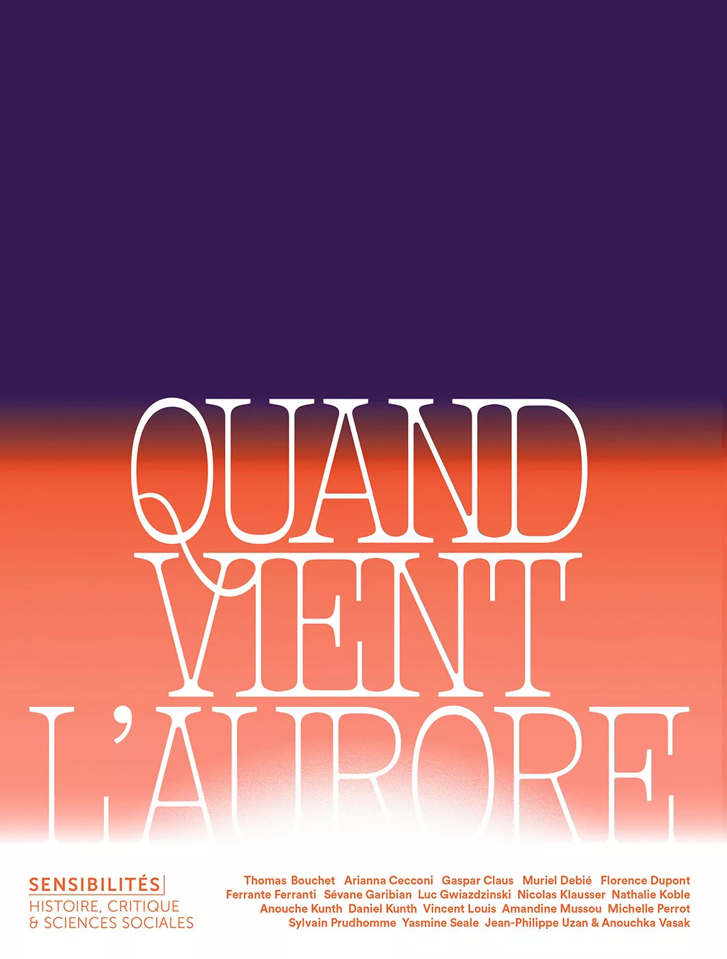 Avec les contributions de Thomas Bouchet, Arianna Cecconi, Gaspar Claus, Muriel Debié, Florence Dupont, Ferrante Ferranti, Sévane Garibian, Luc Gwiazdzinski, Nicolas Klausser, Nathalie Koble, Anouche Kunth, Daniel Kunth, Vincent Louis, Amandine Mussou, Michelle Perrot, Sylvain Prudhomme, Yasmine Seale, Jean-Philippe Uzan & Anouchka Vasak.